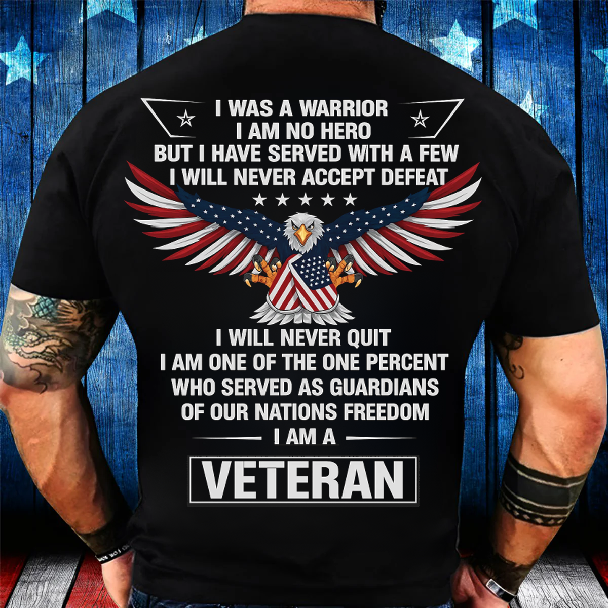 "I Am Veteran, Never Accept Defeat" T-Shirt, Patriotic Edition for Veterans Day, Eagle Design Tee